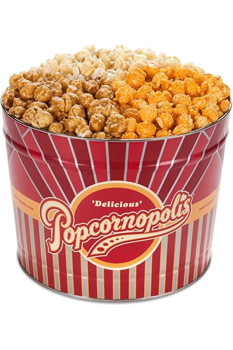 Amazon Com Signature Popcorn 1 Gallon Gold Chicago Skyline Reusable Plastic Bucket Tin Perfect Duo Caramel Cheddar Cheese Mix Gourmet Popcorn Snack Gluten Free